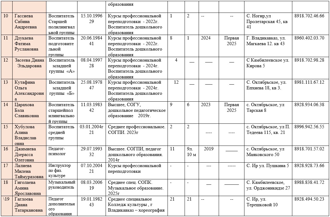 Сведения о пед. кадрах ДОУ Ир на 01.09.25